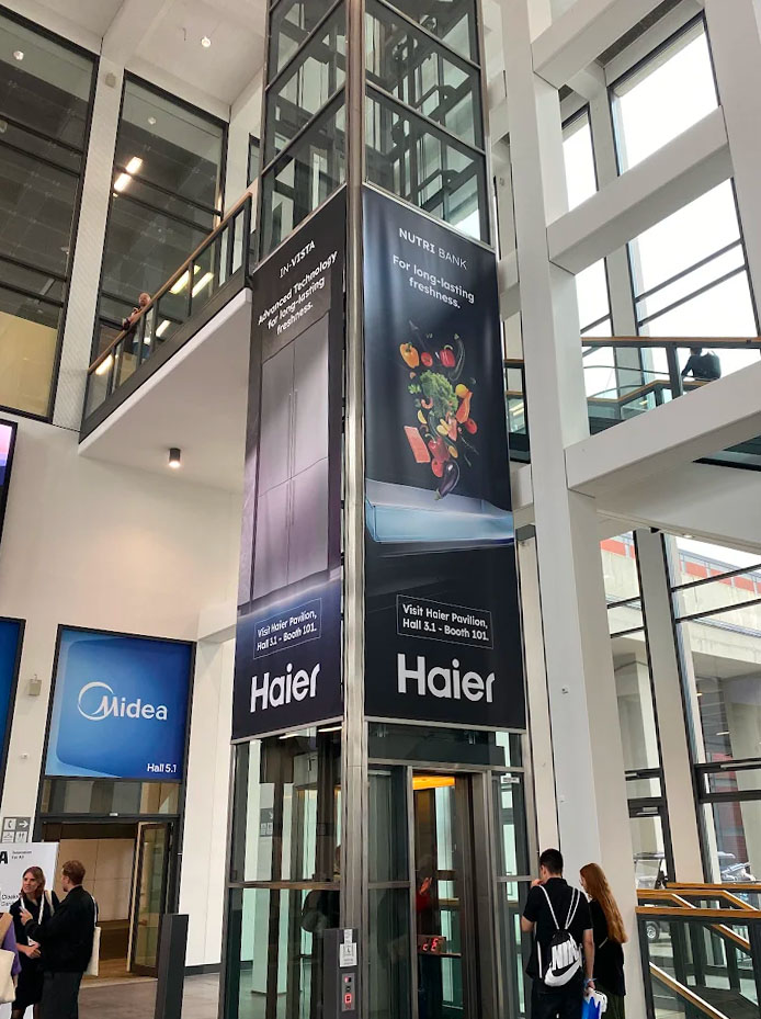 L’IFA Berlin est le rendez-vous européen incontournable de l’électroménager et de l’innovation, où les plus grandes marques présentent chaque année leurs nouveautés. À cette occasion, Haier a confié a IMPRODSTUDIO la création visuelle de ses lancements produits. Des rendus 3D photoréalistes de produits encore non commercialisés sont réalisés pour accompagner les reveals et les campagnes de lancement. Ce travail comprend également le développement du branding et des Key Visuals, pensés pour valoriser les nouvelles gammes et affirmer leur positionnement. L’ensemble se décline enfin en dispositifs OOH grand format, affiches monumentales, habillages de façades et formats XXL, déployés autour et au cœur du salon.
